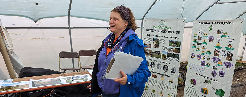 C’est un moment que nous aimons particulièrement, parce qu’il permet de vous expliquer en détail comment passer du terrain au produit, de vous montrer dans les faits comment cela se passe, et de vous faire comprendre simplement ce que représente une culture de chanvre bio à la ferme.